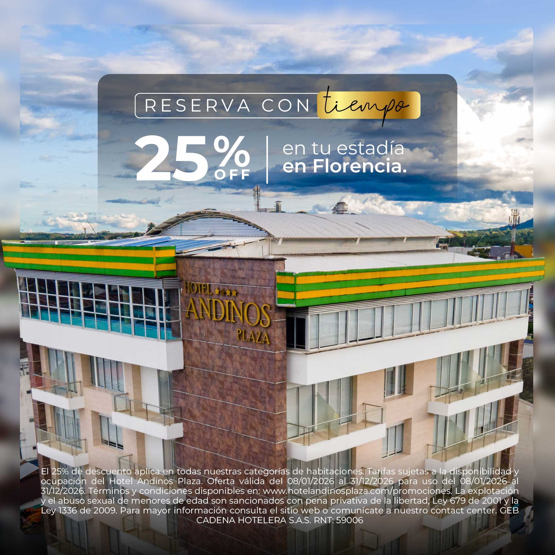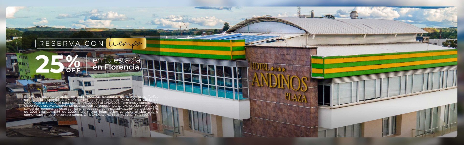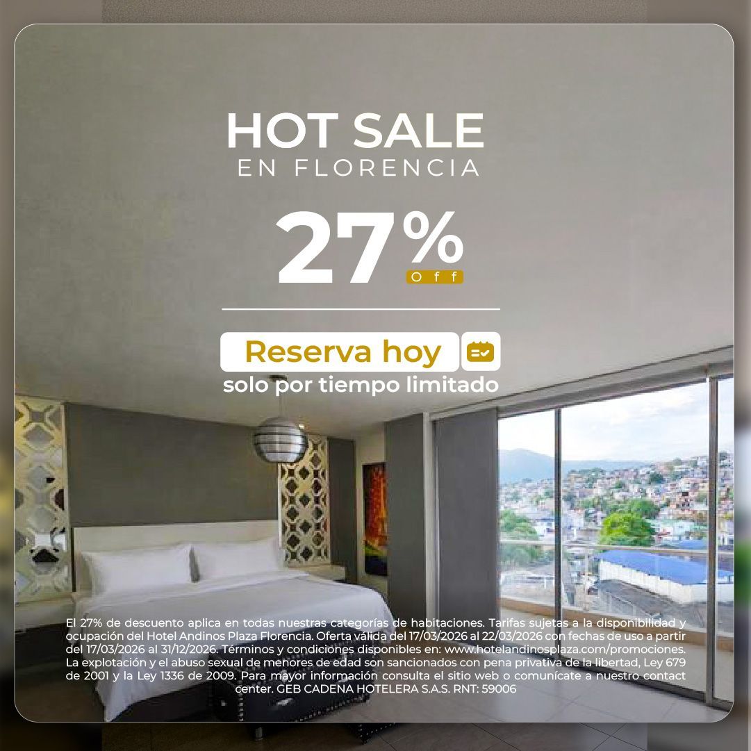 Conoce nuestras promociones de hoteles en Florencia Caquetá y viaja con tarifas preferenciales todo el año. Planes corporativos, escapadas románticas y descuentos por reserva anticipada. Lo mejor de Andinos Plaza, a un mejor precio.