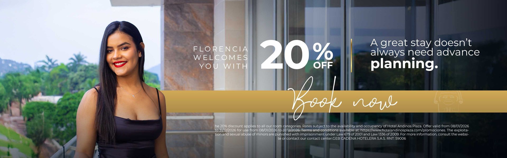 Discover our hotel deals in Florencia, Caquetá, and travel with preferential rates all year round. Corporate plans, romantic getaways, and early booking discounts. The best of Andinos Plaza, at a better price.
