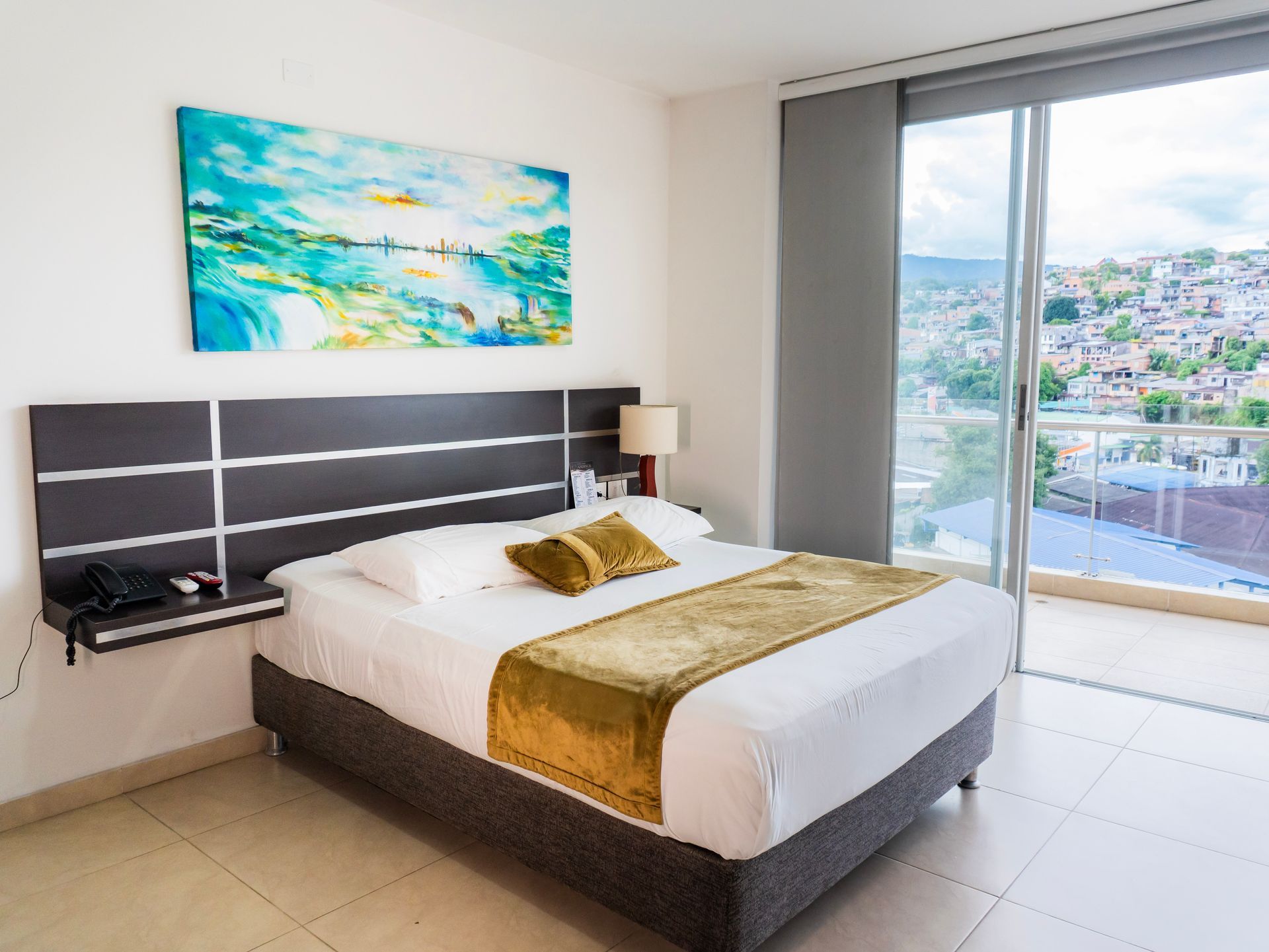 Nuestra habitación más completa. Cama king, sala privada, jacuzzi, escritorio y una vista tranquila de la ciudad. Para quienes buscan habitaciones en Florencia Caquetá con todos los detalles para descansar o trabajar sin interrupciones.